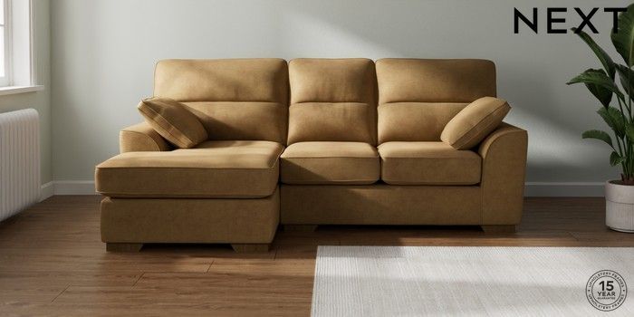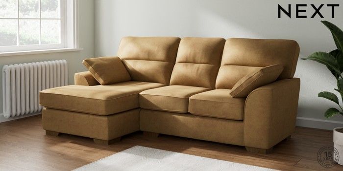 7.2.10 Stamford Highback Small Sofa Chaise - Left Hand Luxe Chenille Honey Yellow Large Square Angle - Mid | Made Click here to use our website with more accessibility support, for example screen readers