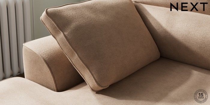 7.2.10 Stamford Highback Small Sofa Chaise - Left Hand Luxe Chenille Mid Natural Large Square Angle - Chrome Metal | Made Click here to use our website with more accessibility support, for example screen readers