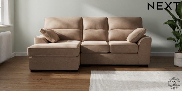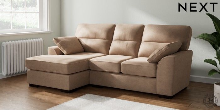 7.2.10 Stamford Highback Small Sofa Chaise - Left Hand Luxe Chenille Mid Natural Large Square Angle - Dark | Made Click here to use our website with more accessibility support, for example screen readers