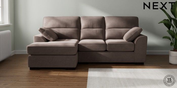 7.2.10 Stamford Highback Small Sofa Chaise - Left Hand Luxe Chenille Mink Brown Large Square Angle - Dark | Made Click here to use our website with more accessibility support, for example screen readers