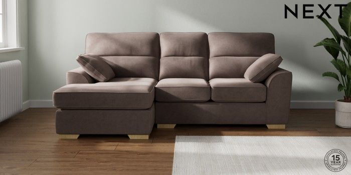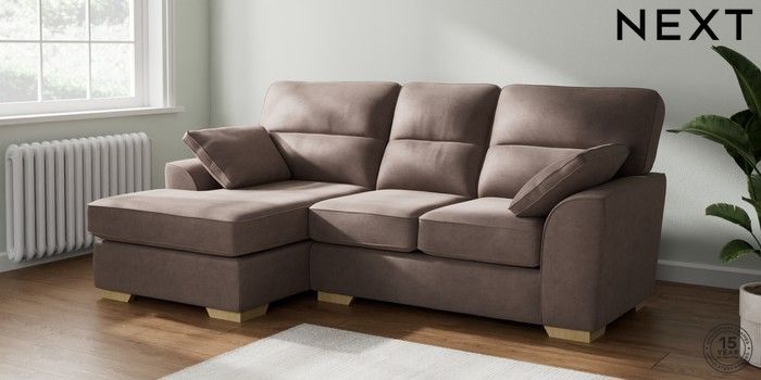 7.2.10 Stamford Highback Small Sofa Chaise - Left Hand Luxe Chenille Mink Brown Large Square Angle - Light | Made Click here to use our website with more accessibility support, for example screen readers