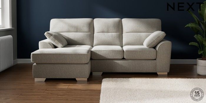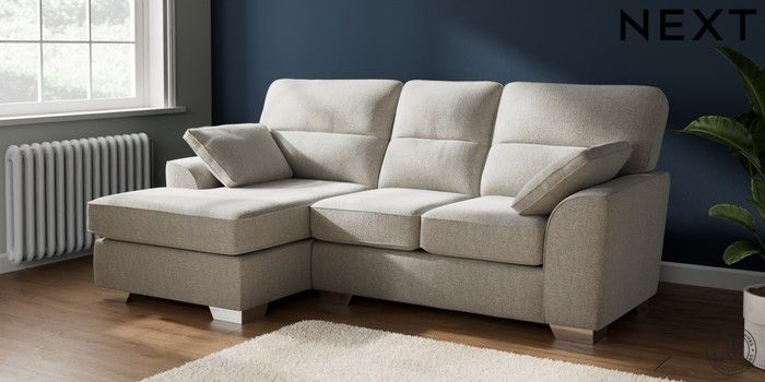 7.2.10 Stamford Highback Small Sofa Chaise - Left Hand Multi Weave Light Blue Large Square Angle - Chrome Metal | Made Click here to use our website with more accessibility support, for example screen readers