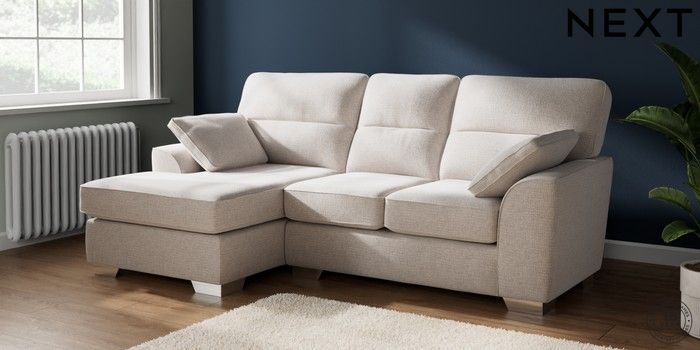 7.2.10 Stamford Highback Small Sofa Chaise - Left Hand Multi Weave Oyster Large Square Angle - Chrome Metal | Made Click here to use our website with more accessibility support, for example screen readers
