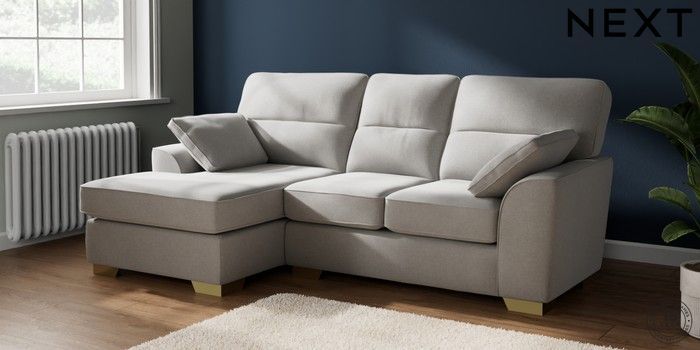 7.2.10 Stamford Highback Small Sofa Chaise - Left Hand Natural Mix Light Grey Large Square Angle - Brushed Brass | Made Click here to use our website with more accessibility support, for example screen readers