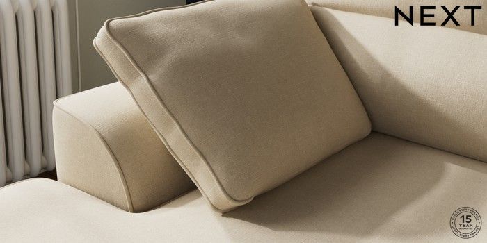 7.2.10 Stamford Highback Small Sofa Chaise - Left Hand Natural Mix Light Natural Large Square Angle - Chrome Metal | Made Click here to use our website with more accessibility support, for example screen readers