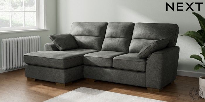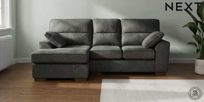 7.2.10 Stamford Highback Small Sofa Chaise - Left Hand Plush Chenille Dark Grey Large Square Angle - Mid | Made Click here to use our website with more accessibility support, for example screen readers