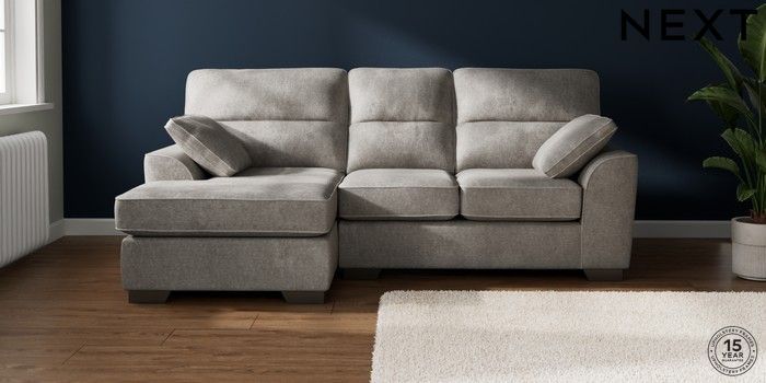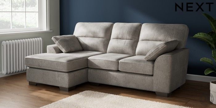 7.2.10 Stamford Highback Small Sofa Chaise - Left Hand Plush Chenille Light Grey Large Square Angle - Gunmetal | Made Click here to use our website with more accessibility support, for example screen readers