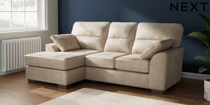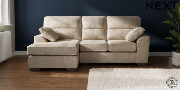 7.2.10 Stamford Highback Small Sofa Chaise - Left Hand Plush Chenille Light Natural Large Square Angle - Gunmetal | Made Click here to use our website with more accessibility support, for example screen readers