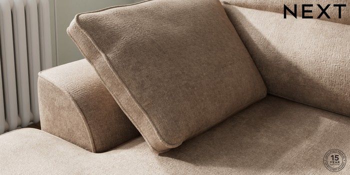 7.2.10 Stamford Highback Small Sofa Chaise - Left Hand Plush Chenille Mid Natural Large Square Angle - Brushed Brass | Made Click here to use our website with more accessibility support, for example screen readers