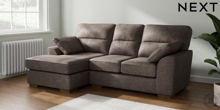 7.2.10 Stamford Highback Small Sofa Chaise - Left Hand Plush Chenille Mink Brown Large Square Angle - Mid | Made Click here to use our website with more accessibility support, for example screen readers