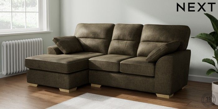 7.2.10 Stamford Highback Small Sofa Chaise - Left Hand Plush Chenille Moss Green Large Square Angle - Light | Made Click here to use our website with more accessibility support, for example screen readers