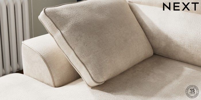 7.2.10 Stamford Highback Small Sofa Chaise - Left Hand Plush Chenille Oyster Large Square Angle - Chrome Metal | Made Click here to use our website with more accessibility support, for example screen readers