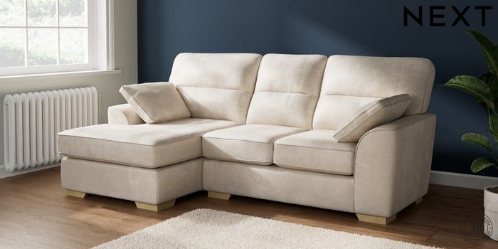 7.2.10 Stamford Highback Small Sofa Chaise - Left Hand Plush Chenille Oyster Large Square Angle - Light | Made Click here to use our website with more accessibility support, for example screen readers