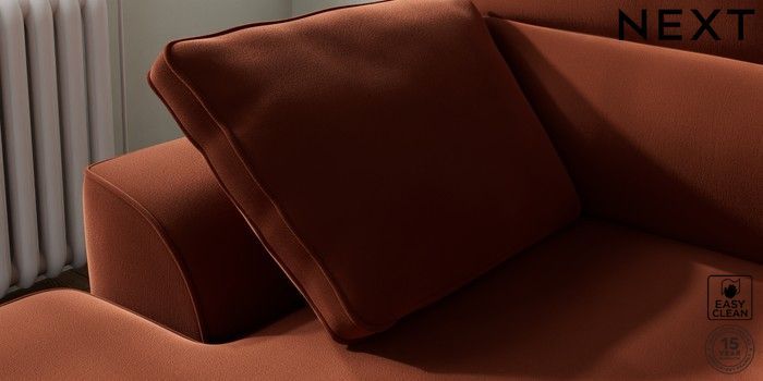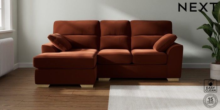 7.2.10 Stamford Highback Small Sofa Chaise - Left Hand Plush Velvet Easy Clean Ginger Orange Large Square Angle - Light | Made Click here to use our website with more accessibility support, for example screen readers