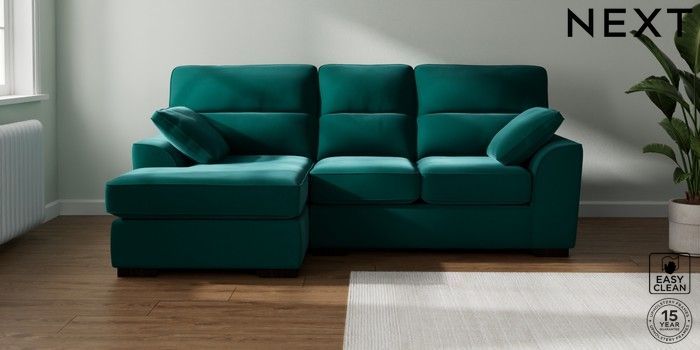 7.2.10 Stamford Highback Small Sofa Chaise - Left Hand Plush Velvet Easy Clean Juniper Green Large Square Angle - Dark | Made Click here to use our website with more accessibility support, for example screen readers