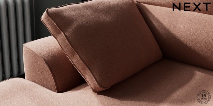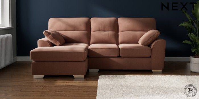 7.2.10 Stamford Highback Small Sofa Chaise - Left Hand Relaxed Linen Look Light Rust Brown Large Square Angle - Chrome Metal | Made Click here to use our website with more accessibility support, for example screen readers