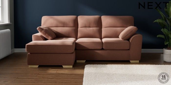7.2.10 Stamford Highback Small Sofa Chaise - Left Hand Relaxed Linen Look Light Rust Brown Large Square Angle - Light | Made Click here to use our website with more accessibility support, for example screen readers