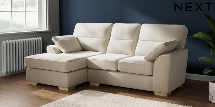 7.2.10 Stamford Highback Small Sofa Chaise - Left Hand Relaxed Linen Look Oyster Large Square Angle - Light | Made Click here to use our website with more accessibility support, for example screen readers