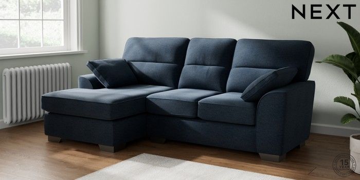 7.2.10 Stamford Highback Small Sofa Chaise - Left Hand Ripple Chenille Dark Blue Large Square Angle - Gunmetal | Made Click here to use our website with more accessibility support, for example screen readers