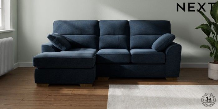 7.2.10 Stamford Highback Small Sofa Chaise - Left Hand Ripple Chenille Dark Blue Large Square Angle - Mid | Made Click here to use our website with more accessibility support, for example screen readers