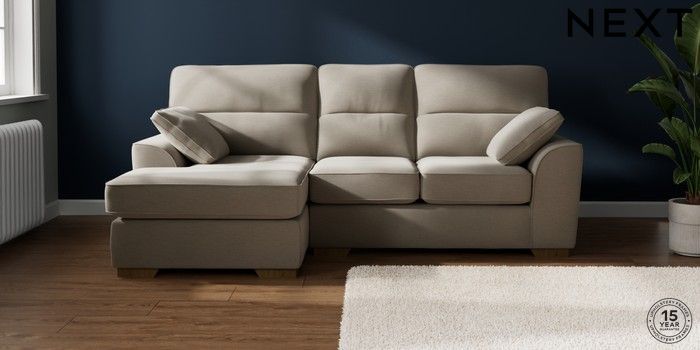 7.2.10 Stamford Highback Small Sofa Chaise - Left Hand Ripple Chenille Light Natural Large Square Angle - Mid | Made Click here to use our website with more accessibility support, for example screen readers