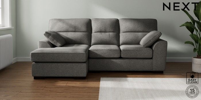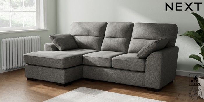 7.2.10 Stamford Highback Small Sofa Chaise - Left Hand Tweedy Blend Easy Clean Dark Grey Large Square Angle - Dark | Made Click here to use our website with more accessibility support, for example screen readers
