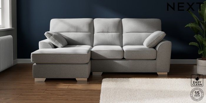 7.2.10 Stamford Highback Small Sofa Chaise - Left Hand Tweedy Blend Easy Clean Light Silver Grey Large Square Angle - Chrome Metal | Made Click here to use our website with more accessibility support, for example screen readers