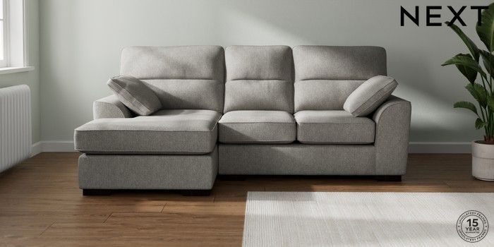7.2.10 Stamford Highback Small Sofa Chaise - Left Hand Tweedy Chenille Mid Grey Large Square Angle - Dark | Made Click here to use our website with more accessibility support, for example screen readers