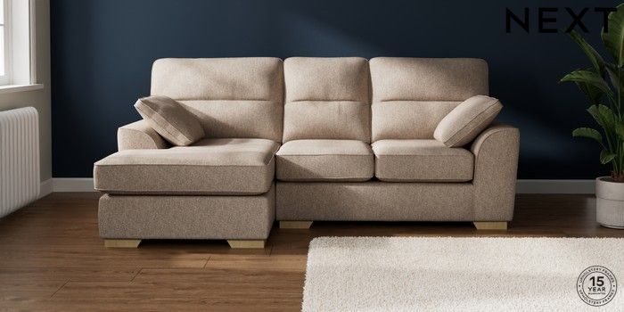 7.2.10 Stamford Highback Small Sofa Chaise - Left Hand Tweedy Chenille Mid Natural Large Square Angle - Light | Made Click here to use our website with more accessibility support, for example screen readers