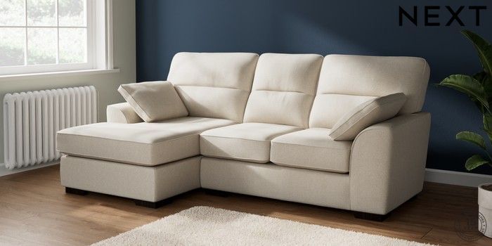 7.2.10 Stamford Highback Small Sofa Chaise - Left Hand Tweedy Chenille Oyster Large Square Angle - Dark | Made Click here to use our website with more accessibility support, for example screen readers