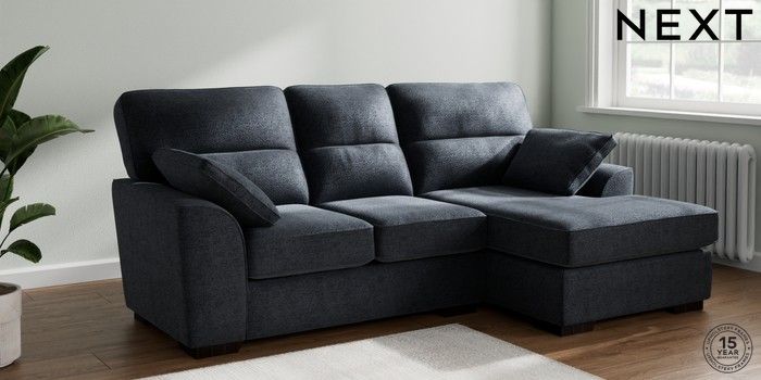 7.2.10 Stamford Highback Small Sofa Chaise - Right Hand Boucle Chenille Dark Slate Blue Large Square Angle - Dark | Made Click here to use our website with more accessibility support, for example screen readers
