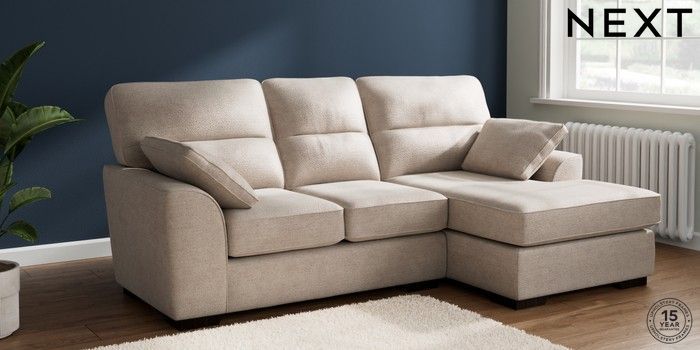 7.2.10 Stamford Highback Small Sofa Chaise - Right Hand Boucle Chenille Light Natural Large Square Angle - Dark | Made Click here to use our website with more accessibility support, for example screen readers