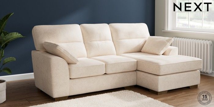 7.2.10 Stamford Highback Small Sofa Chaise - Right Hand Boucle Chenille Oyster Large Square Angle - Mid | Made Click here to use our website with more accessibility support, for example screen readers