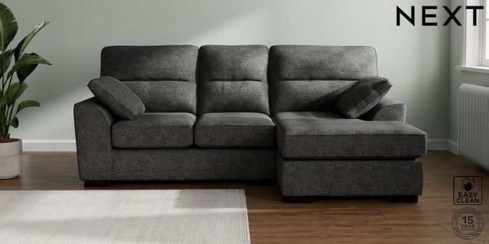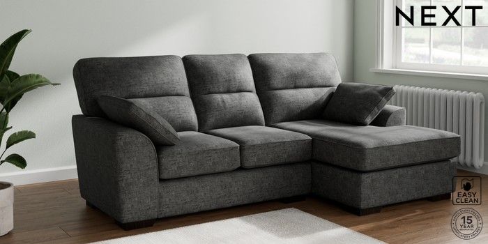 7.2.10 Stamford Highback Small Sofa Chaise - Right Hand Boucle Weave Easy Clean Charcoal Grey Large Square Angle - Dark | Made Click here to use our website with more accessibility support, for example screen readers