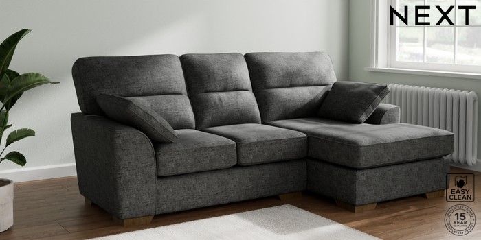 7.2.10 Stamford Highback Small Sofa Chaise - Right Hand Boucle Weave Easy Clean Charcoal Grey Large Square Angle - Mid | Made Click here to use our website with more accessibility support, for example screen readers