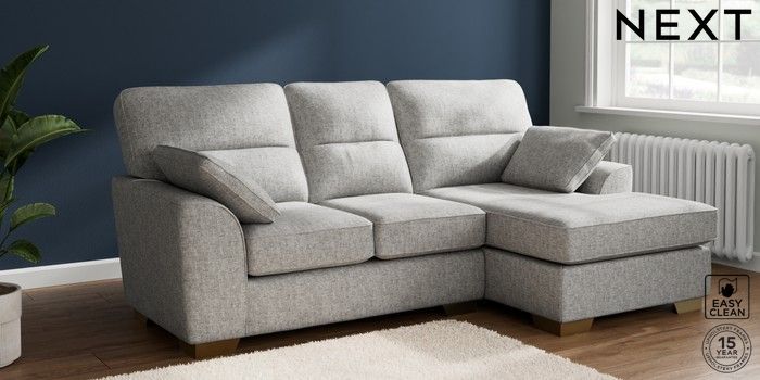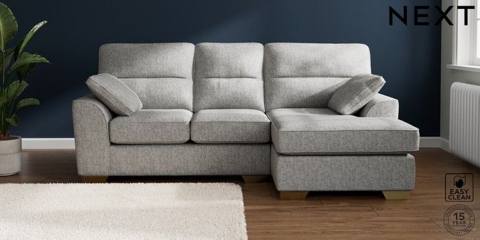 7.2.10 Stamford Highback Small Sofa Chaise - Right Hand Chunky Boucle Easy Clean Light Grey Large Square Angle - Brushed Brass | Made Click here to use our website with more accessibility support, for example screen readers