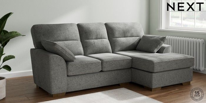7.2.10 Stamford Highback Small Sofa Chaise - Right Hand Chunky Chenille Dark Grey Large Square Angle - Mid | Made Click here to use our website with more accessibility support, for example screen readers