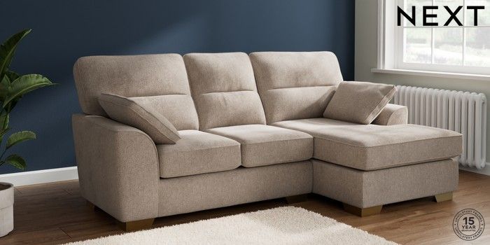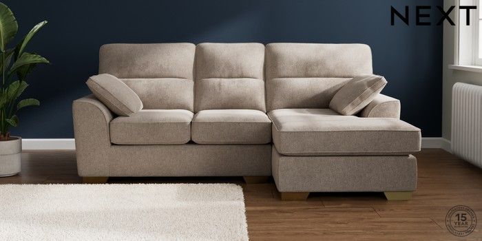 7.2.10 Stamford Highback Small Sofa Chaise - Right Hand Chunky Chenille Light Dove Large Square Angle - Brushed Brass | Made Click here to use our website with more accessibility support, for example screen readers