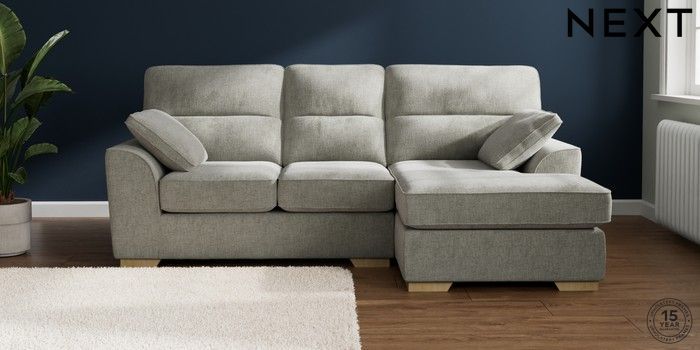 7.2.10 Stamford Highback Small Sofa Chaise - Right Hand Chunky Chenille Light Grey Large Square Angle - Light | Made Click here to use our website with more accessibility support, for example screen readers