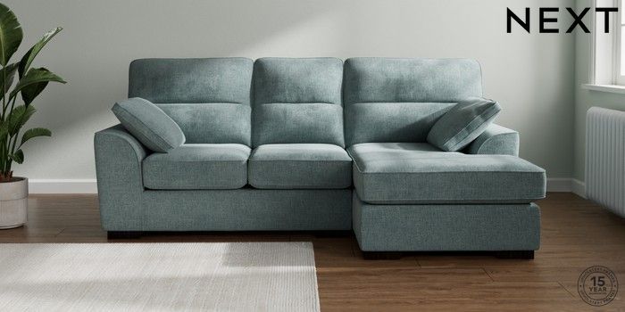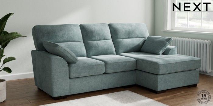 7.2.10 Stamford Highback Small Sofa Chaise - Right Hand Chunky Chenille Light Teal Green Large Square Angle - Dark | Made Click here to use our website with more accessibility support, for example screen readers