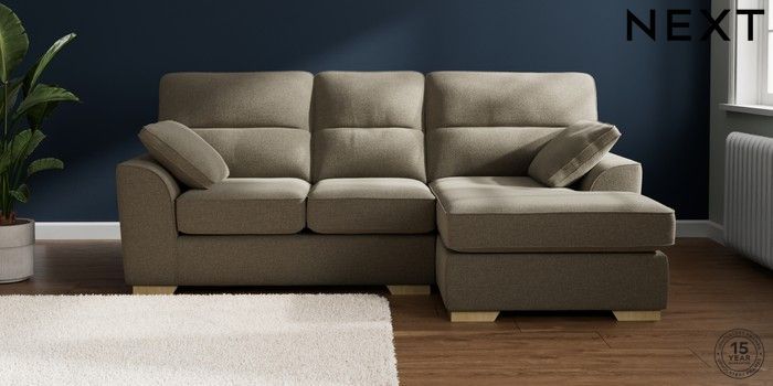 7.2.10 Stamford Highback Small Sofa Chaise - Right Hand Chunky Marl Light Olive Green Large Square Angle - Light | Made Click here to use our website with more accessibility support, for example screen readers