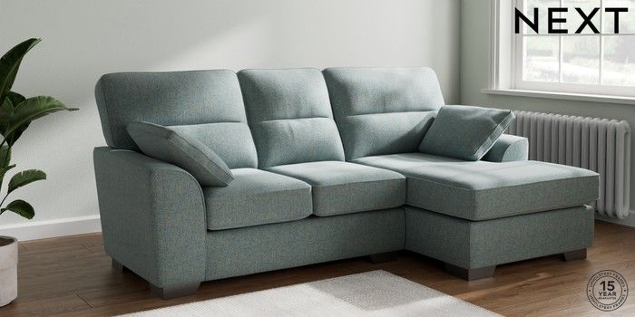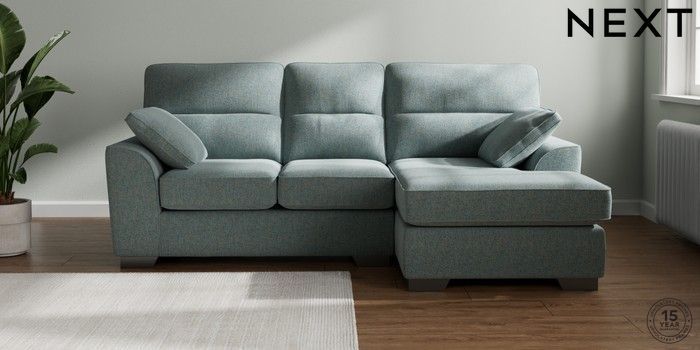 7.2.10 Stamford Highback Small Sofa Chaise - Right Hand Chunky Marl Mid Blue Large Square Angle - Gunmetal | Made Click here to use our website with more accessibility support, for example screen readers