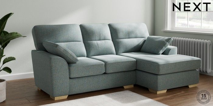 7.2.10 Stamford Highback Small Sofa Chaise - Right Hand Chunky Marl Mid Blue Large Square Angle - Light | Made Click here to use our website with more accessibility support, for example screen readers