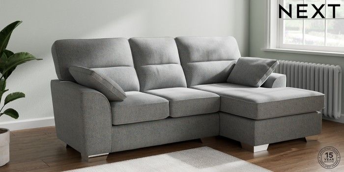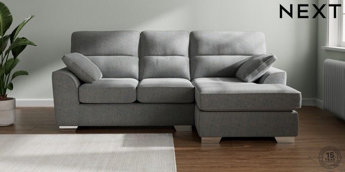 7.2.10 Stamford Highback Small Sofa Chaise - Right Hand Chunky Marl Mid Grey Large Square Angle - Chrome Metal | Made Click here to use our website with more accessibility support, for example screen readers