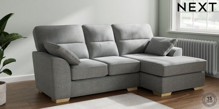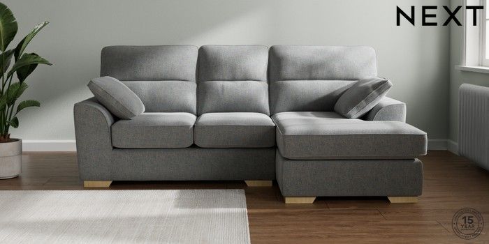7.2.10 Stamford Highback Small Sofa Chaise - Right Hand Chunky Marl Mid Grey Large Square Angle - Light | Made Click here to use our website with more accessibility support, for example screen readers