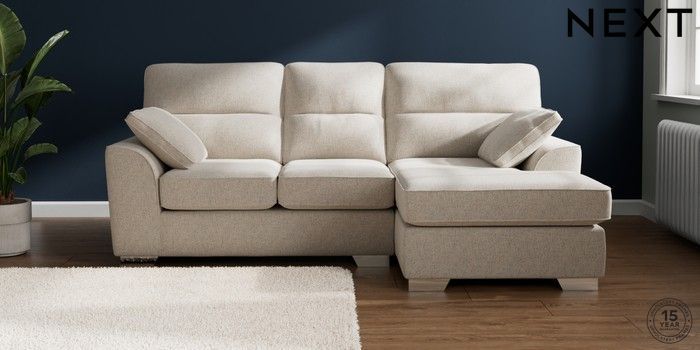 7.2.10 Stamford Highback Small Sofa Chaise - Right Hand Chunky Marl Oyster Large Square Angle - Chrome Metal | Made Click here to use our website with more accessibility support, for example screen readers