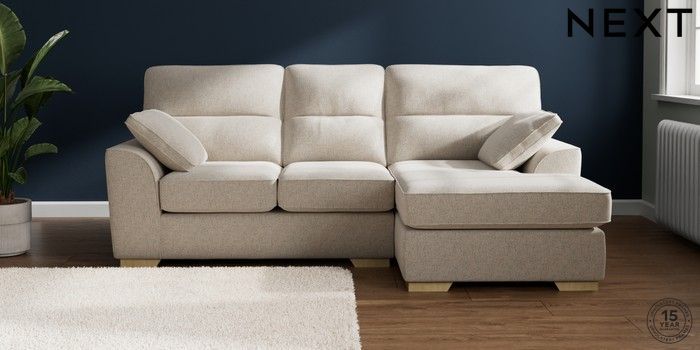 7.2.10 Stamford Highback Small Sofa Chaise - Right Hand Chunky Marl Oyster Large Square Angle - Light | Made Click here to use our website with more accessibility support, for example screen readers