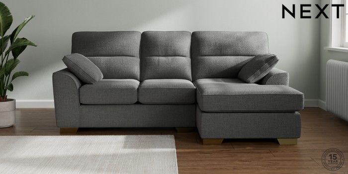 7.2.10 Stamford Highback Small Sofa Chaise - Right Hand Chunky Texture Dark Grey Large Square Angle - Brushed Brass | Made Click here to use our website with more accessibility support, for example screen readers