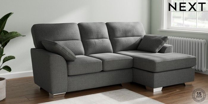 7.2.10 Stamford Highback Small Sofa Chaise - Right Hand Chunky Texture Dark Grey Large Square Angle - Chrome Metal | Made Click here to use our website with more accessibility support, for example screen readers