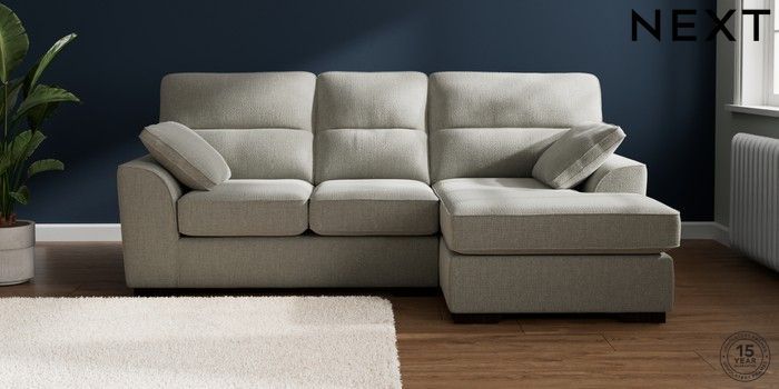 7.2.10 Stamford Highback Small Sofa Chaise - Right Hand Chunky Texture Dove Large Square Angle - Dark | Made Click here to use our website with more accessibility support, for example screen readers